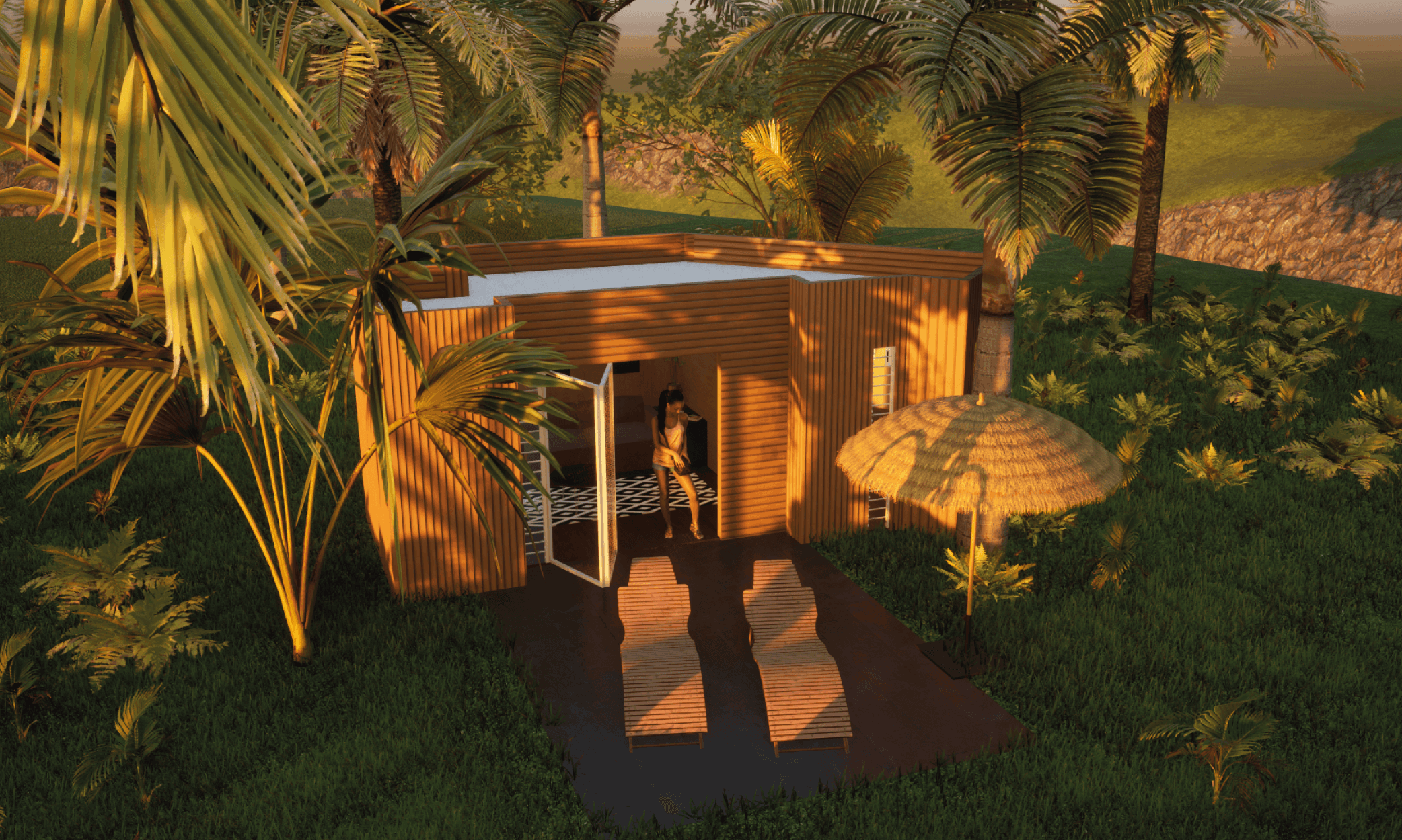 Each element (wall cladding, deck, floors, facade) can be fully customized by the client.