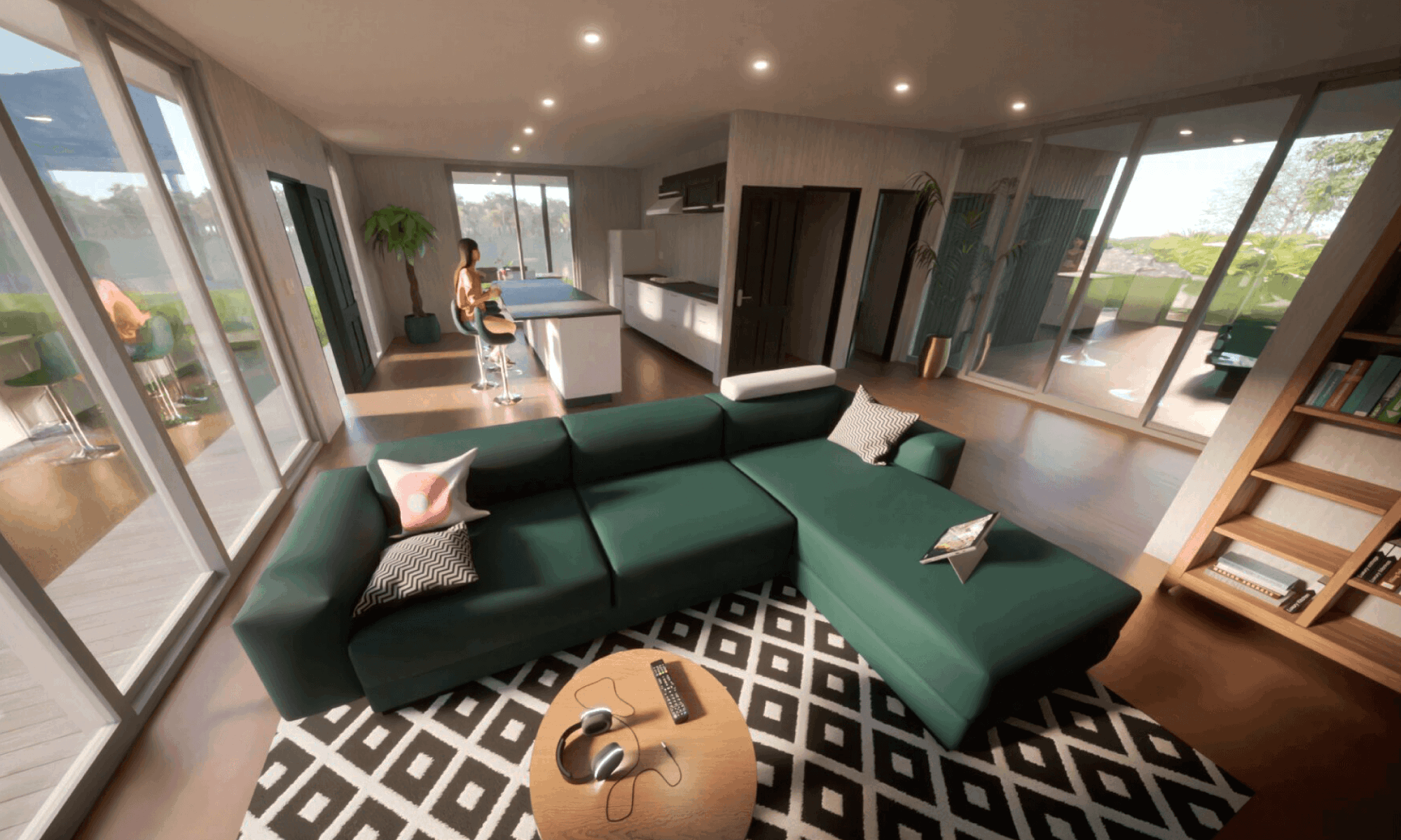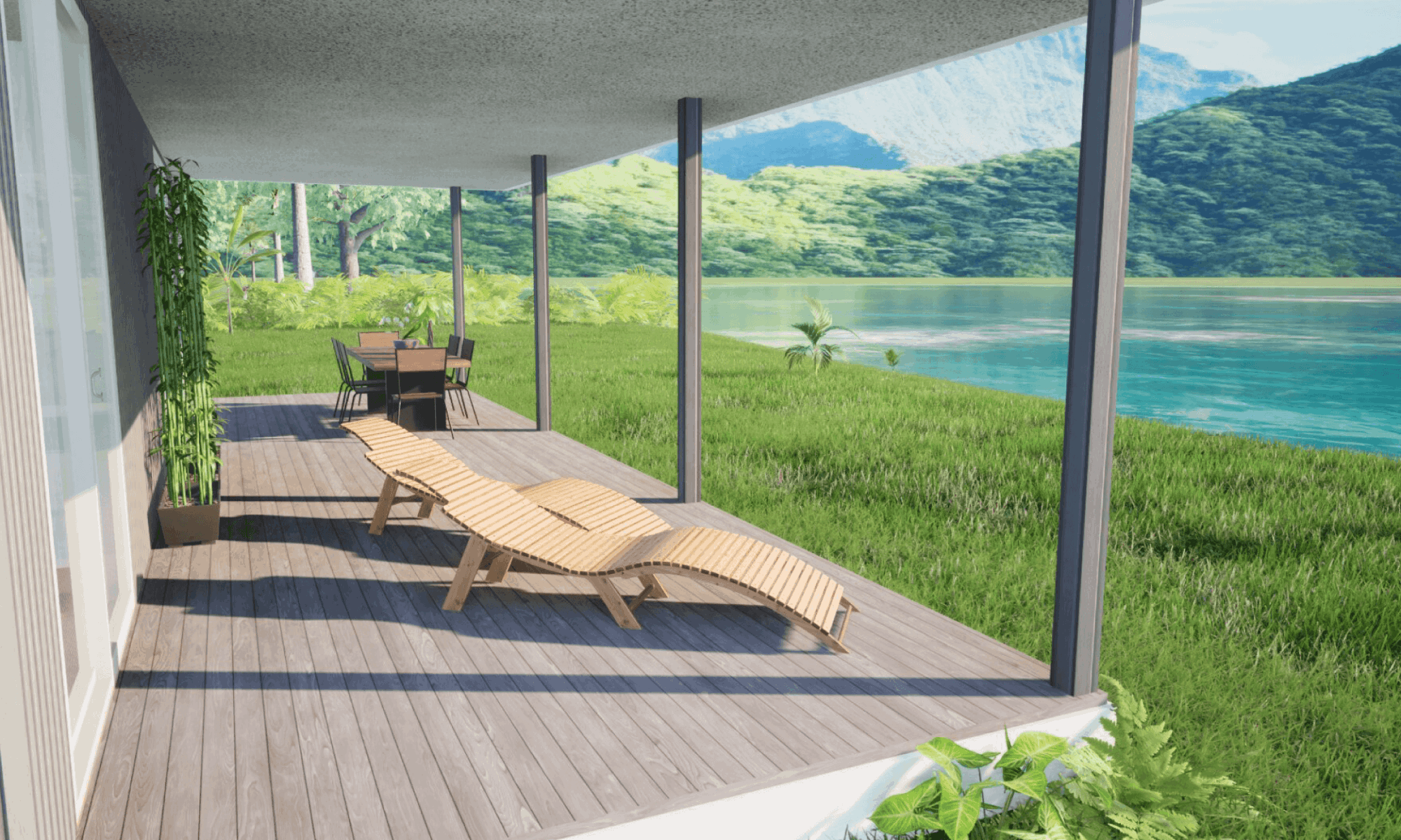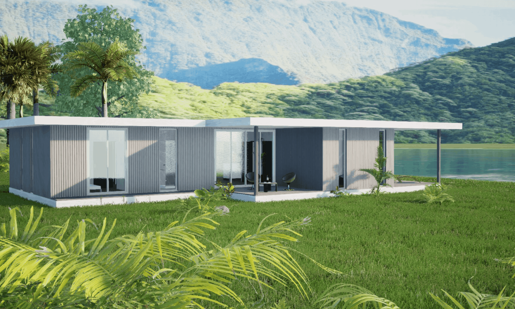Each element (wall cladding, deck, floors, facade) can be fully customized by the client.