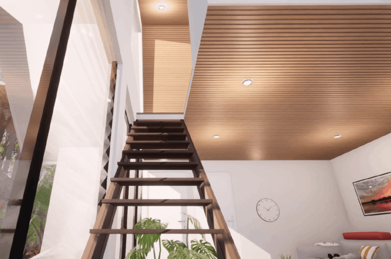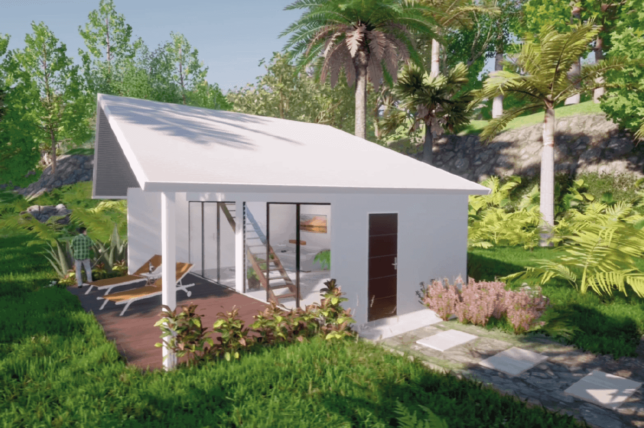 Small house with a beautiful mezzanine bedroom, kitchenette, living room, bathroom, and separate toilet, as well as a covered terrace.