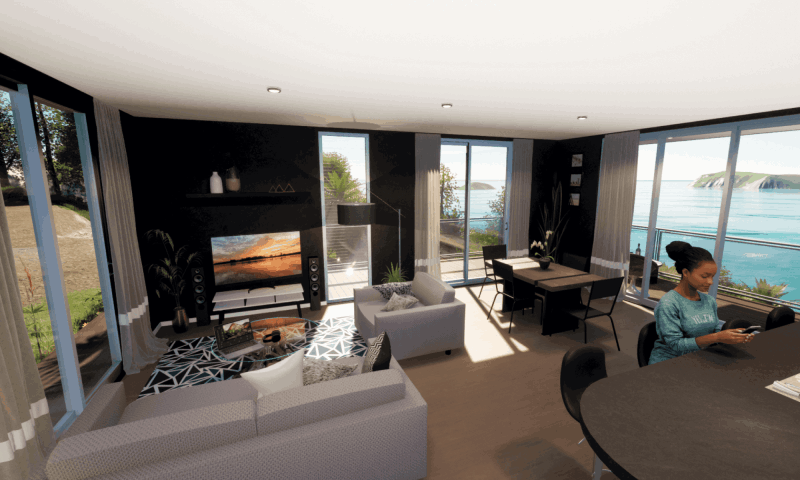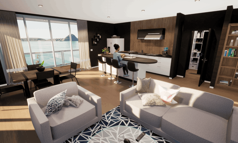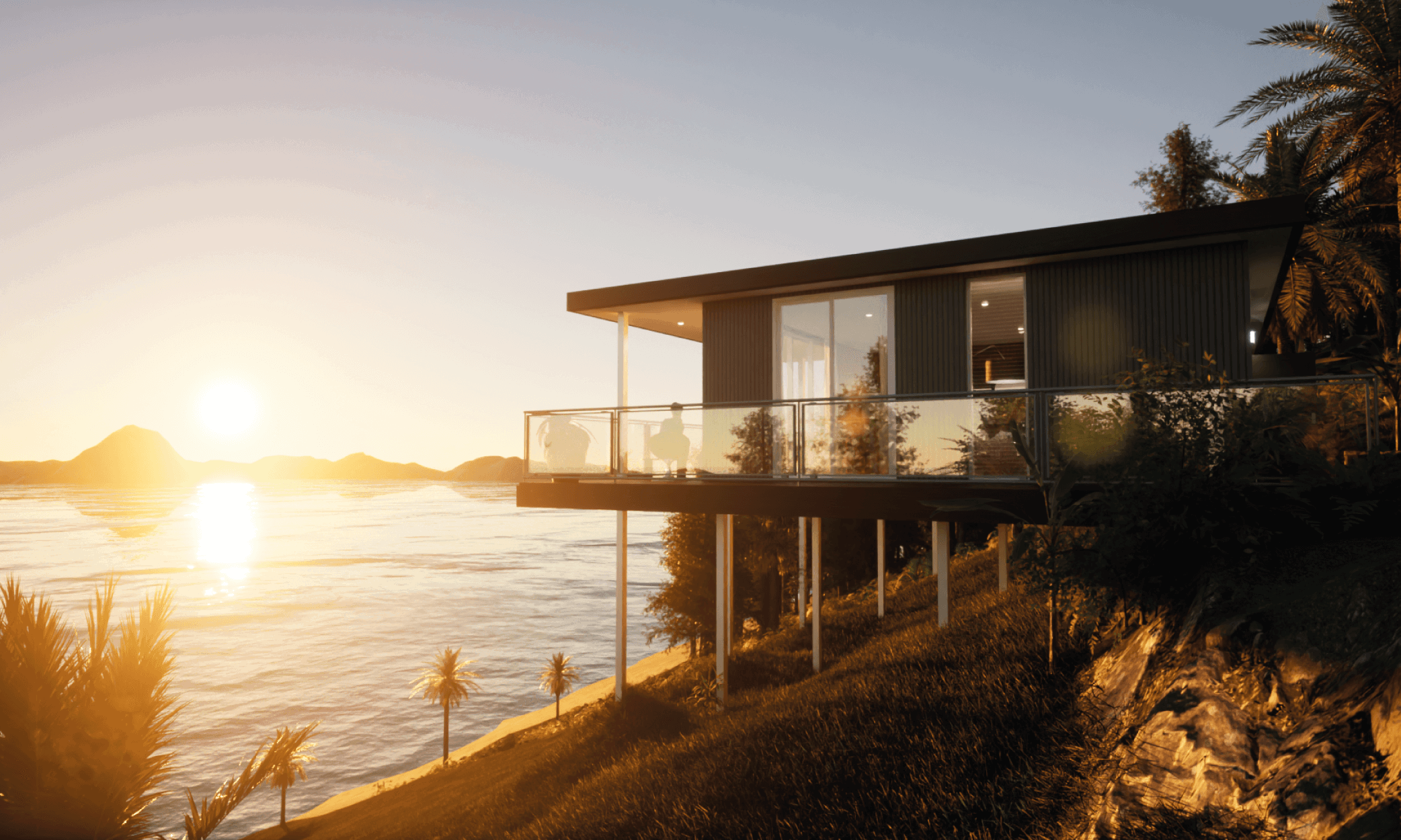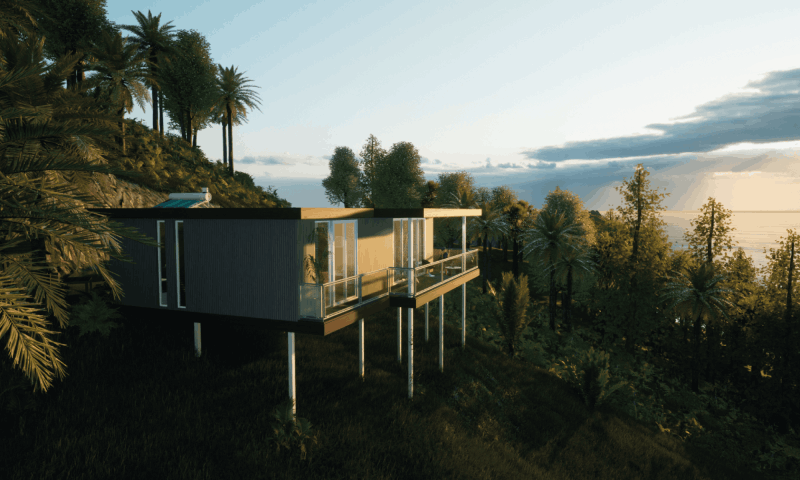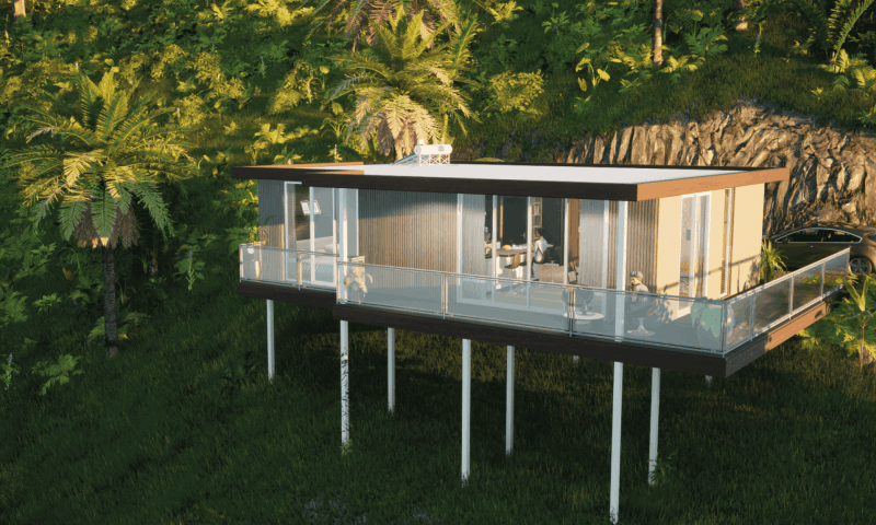 Each element (wall cladding, deck, floors, facade) can be fully customized by the client.